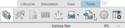 Sie können Daten bezüglich Product Lifecycle Management (PLM) eines Modells in eine kommagetrennte Textdatei (.csv) mit dem Werkzeug Export in der Aktionsleiste exportieren.