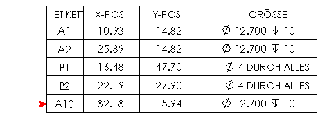 ANSI Zoll Buchstaben anzeigen und Bohrungsgrößen nummerieren