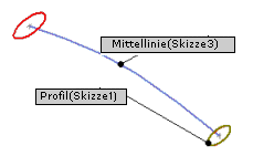 Die Skizzierebenen aller Zwischenprofile stehen senkrecht zur Mittellinie. Die Mittellinie kann eine skizzierte Kurve, eine Modellkante oder eine Kurve sein.