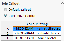 詳細穴の穴寸法テキストのカスタマイズ 詳細穴の穴寸法テキストをカスタマイズできます。これは製造工程で便利です。 穴の製造工程は、詳細穴フライアウトに表示される順序と一致するとは限りません。 製造で必要となる順序と変数に一致する穴寸法テキストをカスタマイズして、製造図面で寸法テキストを使用できます。 たとえば、詳細穴フライアウトには次の順序が表示される可能性があります。 (1)表側座ぐり (2)平行 (3)平行ねじ山 製造工程で穴を作成する順序は次のとおりです。(3)平行ねじ山 (2)平行 (1)表側座ぐり 詳細穴寸法テキストをカスタマイズするには: 詳細穴(Advanced Hole)PropertyManager の穴寸法テキスト(Hole Callout)でユーザー定義寸法テキスト(Customize callout)をクリックします。 寸法テキストの順序を変更するには、寸法テキスト文字列を選択し、上へ移動(Move Up)および下へ移動(Move Down)をクリックします。 寸法テキスト文字列をカスタマイズするには、寸法テキスト文字列(Callout String)リストで文字列をダブルクリックし、変数を選択します。 寸法テキストの変数(Callout Variables)を選択し、すべての変数のリストを表示することもできます。変更された文字列には、リストでアスタリスクが付きます。 寸法テキスト文字列(Callout String)の項目ごとにデフォルト設定を復元するには、文字列を右クリックしてデフォルトストリングに戻す(Restore Default String)をクリックします。 すべてのカスタマイズを除去するには、穴寸法テキスト(Hole Callout)でデフォルト寸法テキスト(Default callout)をクリックします。 デフォルト寸法テキスト(Default callout)では、PropertyManager のすべての穴寸法テキストに行った、すべてのカスタマイズが除去されます。 親トピック詳細穴 詳細穴要素を作成する 詳細穴の要素仕様を設定する 詳細穴インスタンスを作成して配置する 詳細穴の作成 詳細穴タイプ PropertyManager 詳細穴の位置 PropertyManager
