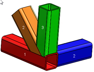 合成コーナー(Complex Corner)PropertyManager で平面トリム(Planar Trim)タイプのメンバーを選択すると、メンバーはボディ トリムされたメンバーの組み合わせでトリムされます。
