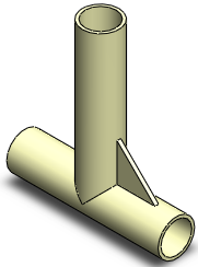 원통면과 원통면 사이 보강판의 경우 보강판 PropertyManager에서 평면, 스케치선, 직선 모서리를 사용하여 벡터 방향을 정의할 수 있습니다. 또한 벡터 방향을 원통면의 반대쪽으로 뒤집을 수도 있습니다.