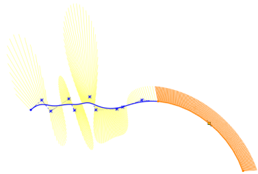그 결과 자유곡선과 원호 사이에서 공유하는 끝점에서 동등 곡률과 동등 비율의 곡률로 완만한 연속성이 생성됩니다.