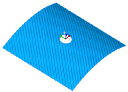 A imagem mostra um exemplo de painel curvado com um furo. A primeira camada está orientada a 45°, indicada pela seta branca, do 0° de referência. A segunda camada está orientada a 45° em relação à primeira camada ou a 90° do 0° de referência. A célula Ângulo se torna amarela quando o ângulo da camada é definido em relação à primeira camada. A dica de ferramenta da barra deslizante de ângulo