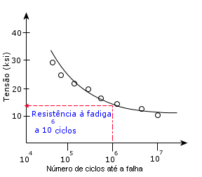 A resistência à fadiga é determinada pela aplicação de diferentes níveis de tensão cíclica para espécimes de teste individuais e pela medição do número de ciclos até a falha. A representação gráfica do pontos de dados de fadiga é a amplitude da tensão cíclica ou a tensão alternada (S - eixo vertical) em relação ao número de ciclos até a falha (N - eixo horizontal). A resistência à fadiga é definida como a tensão na qual a falha por fadiga ocorre em um determinado número de ciclos. Uma curva S-N típica é mostrada abaixo.
