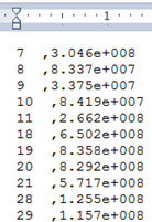 Você pode usar um único espaço, um espaço de tabulação ou uma vírgula como delimitador. Use a letra "e" para o multiplicador da potência de 10. Não use a vírgula para representar os separadores de milhares. Exemplos de formatos de arquivo de entrada são mostrados abaixo.