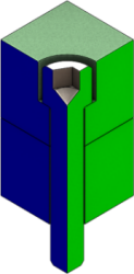 Continua exibindo a tampa de seção com a cor especificada na caixa Editar cor depois que o PropertyManager de Vista de seção é fechado. A tabela abaixo mostra os resultados de exibição depois que o PropertyManager é fechado para uma montagem. |