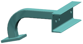 Dobra um ou mais corpos sobre o eixo X vermelho da tríade (o eixo da dobra). Posicione a tríade e os planos de aparagem para controlar o grau, o local e a extensão da dobra. Esse tipo de flexão pode ser usado para muitas aplicações, incluindo desenho industrial e mecânico, solução de condições de salto de volta em estampagem de metal, remoção de rebaixos em formas de superfície complexas etc. O plano neutro da dobra passa através da origem da tríade e corresponde ao seu plano X-Z. O comprimento do arco entre os planos de aparagem ao longo do plano neutro permanece constante durante toda a operação de dobra.