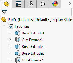 Para facilitar o acesso a recursos como cortes, furos, e chanfros, você pode agrupá-los em uma subpasta na pasta Favoritos.