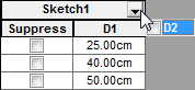 - Marque ou desmarque caixas de seleção para alterar o estado de supressão de recursos, esboços, componentes e posicionamentos.