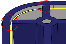Переход зазора Принятие в расчет смежных геометрических объектов, например, ребер, соприкасающихся с боковыми стенками детали. В данном примере выберите Перейти зазор, чтобы ребра могли соприкасаться с гранями выступа и канавки.