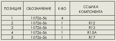Чтобы можно было связать текст позиций со значениями справочных компонентов, в чертеже должна иметься спецификация со столбцом ССЫЛКА КОМПОНЕНТА.