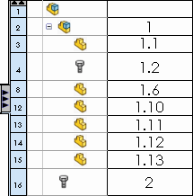 Нажмите правой кнопкой мыши ячейку в столбце спецификации «Структура сборки», чтобы объединить элемент выбранной ячейки со всеми идентичными элементами в спецификации.
