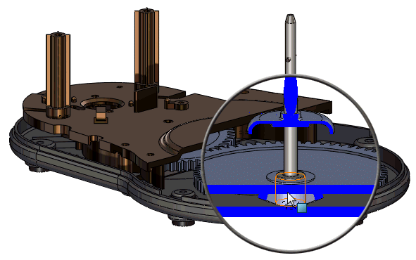 С помощью инструмента увеличительного стекла можно подробно изучать модель и осуществлять выбор, не изменяя вид в целом. Подобные действия облегчают выбор объектов для таких операций, как создание сопряжений.