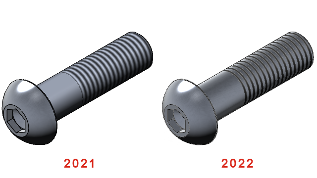 外觀和紋路 當您將裝飾螺紋線套用至零件時,該零件上的任何外觀或紋路會出現在裝飾螺紋線之間。 您在 SOLIDWORKS 中套用的裝飾螺紋線也受到 SOLIDWORKS Visualize 的支援。 請參閱裝飾螺紋線。 上層主題裝飾螺紋線 深度和特徵所有權