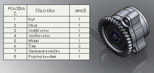 Vytvořte kusovník v sestavě klepnutím na. Po nastavení parametrů ve správci PropertyManager klepněte do grafické plochy a umístěte kusovník.