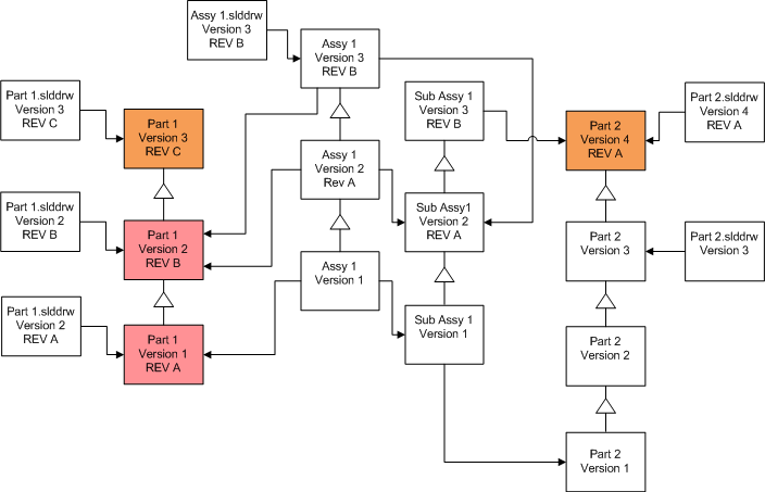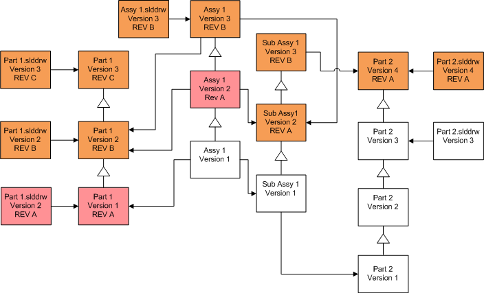 Domyślnie rysunki części i złożeń nie są uaktualnione. Aczkolwiek ponieważ rysunki są rodzicami części i złożeń, ekran Ostrzeżenie przerwanego odniesienia pozwala na uaktualnienie rysunków, które mają odniesienia do uaktualnianych części i złożeń.