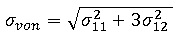 A tensão de von Mises para um caso de tensão de plano geral é fornecida por:
