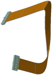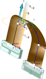 Você pode criar rotas de cabos flexíveis de faixa única entre dois conectores como parte das rotas elétricas a partir de e se selecionar Cabo flexível como o tipo de sub-rota. Você também pode arrastar e soltar um componente de cabo flexível para uma montagem de rota.