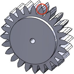 Neste exemplo, a engrenagem contém dois corpos sólidos. Para um dos corpos, as bordas dos dentes da engrenagem são filetadas. Para o outro corpo, as bordas não são filetadas.