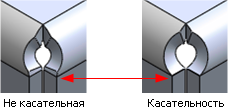 Создание скругления, которое начинается с вершины в области сгиба и фланца и является касательной к двум фланцам. Доступно только для углов с тремя сгибами. |
