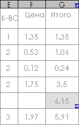 Можно заполнить ячейку таблицы суммой значений предыдущих ячеек столбца. Например, в спецификации можно отобразить общую стоимость набора объектов.
