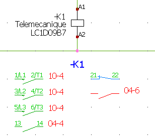 При создании миниатюр перекрестных ссылок в программе создается список всех цепей, связанных с компонентом. Затем к списку применяется фильтр, чтобы сохранились только цепи типа Дочерний объект или Тот же уровень, и формируется графика с использованием миниатюр перекрестных ссылок, связанных с типом цепи. Номера физических клемм добавляются автоматически в соответствии с позицией обозначений в электротехническом проекте и чертежах.