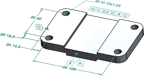本范例说明扣件浮动如何影响受固定扣件装配体约束的零件的尺寸测量。
