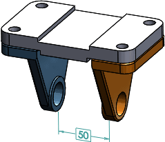 该装配体包含使用 10 毫米螺栓固定在顶部平板上的轮轴支架。 要计算的尺寸是轮轴支架内部面之间的最小距离和最大距离。