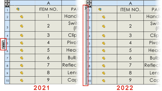 材料明细表 材料明细表 (BOM) 的用户界面已更新,更易于使用。 当您展开或折叠材料明细表时,可选区域跨越材料明细表的整个一侧。 父主题出详图和工程图 剪裁交替位置视图 预定义的视图 出详图模式 形位公差符号 在半径和直径尺寸之间切换 工程图视图中的折弯线 材料明细表中的切割清单支持 对称线性直径尺寸
