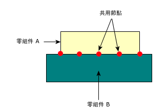 在零組件邊界上呈現共同網格節點的圖示。 兩個零組件網格為單一本體。 |