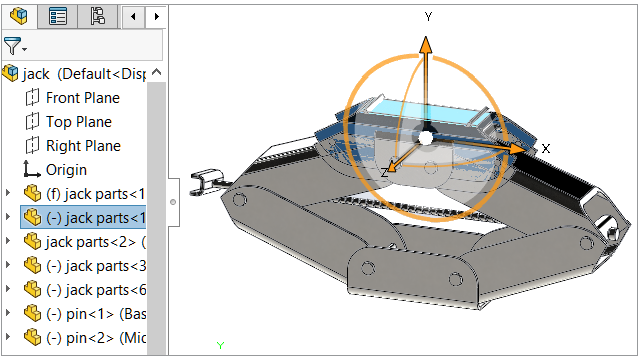 與三度空間參考一起移動 當您選擇一或多個零組件時,三度空間參考會自動出現。 當三度空間參考可使用時,可使用 Ctrl + 拖曳,沿指定方向複製所選零組件。 上層主題組合件 以不同模式開啟次組合件 從零件表中排除零組件 模型組態表格 複製排列的預設種子位置 在剖面視圖排除失敗的零組件 以輕量抑制模式解除數學關係式 快速結合文意感應工具列