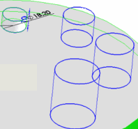 除料伸長特徵套用至所有的多本體零件上 使用環狀複製排列的除料伸長特徵套用至單一的本體上 使用環狀複製排列的除料伸長特徵套用至所有的本體上