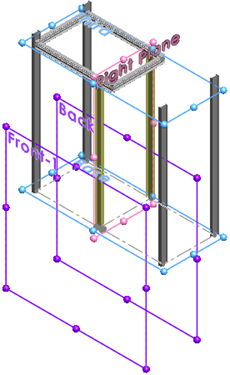 在參考基準面產生主要成員 若要在參考基準面產生主要成員: 針對主要成員類型,請按一下參考平面成員 。 針對參照組,在快顯 FeatureManager(特徵管理員) 中展開參考資料來選擇下列平面。 您也可以按一下檢視 > 隱藏/顯示 > 平面來顯示平面。 針對開始與終止平面,按一下基材及第三。 這些平面均為平行且定義成員的長度。 針對平面組 1,按一下右基準面。 此平面會垂直且相交於開始與終止平面. 針對平面組 2,按一下前視-1 以及後視。 平面組 2 會與平面組 1 相交。兩者均定義結構中心的兩個成員之位置。 解除 PropertyManager 的固定 並按一下 。 完成結構系統的主要成員。 上層主題主要成員