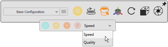 SOLIDWORKS Visualize 包含快速影像計算模式的選項: 速度或品質。 您可以從主工具列存取此開關。