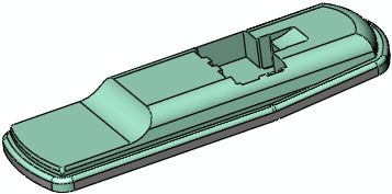 Povrchové tělo nástroje odsadí cílové objemové tělo Objem Cílové tělo (dálkové ovládání) odsazený o Oblast těla nástroje (červený vysunutý povrch) Náhled Je použit výsledek s Mezery a Tloušťky Nadřazené témaPříklady prvků prolisu Příklad prolisu – vrtání Příklad prolisu – více těl Objemové tělo nástroje odsadí cílové povrchové tělo Objemová těla nástrojů odsadí cílové objemové tělo