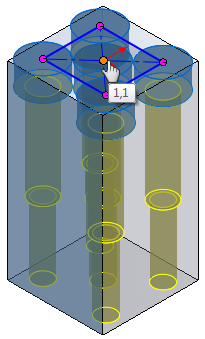 Vytváření a umístění instancí pokročilých děr Postup vytvoření a umístění instancí pokročilých děr: Ve správci PropertyManager vyberte záložku Polohy. Můžete vybrat více bodů nebo použít skicu k vytvoření více děr. Pokud zapomenete vybrat záložku Polohy a kliknete na , software vás vyzve k vybrání bodu na ploše pro umístění díry. Kliknutím na OK v okně výzvy otevřete záložku Polohy panel nástrojů Skica. Klikněte na Obdélník s počátkem ve středu (panel nástrojů Skica) a vytvořte skicu obdélníku s použitím počátku skici na ploše jako středu. Kliknutím na zavřete PropertyManager Obdélník s počátkem ve středu a vrátíte se na PropertyManager Umístění díry. Software vytvoří pět instancí díry včetně bodu skici ve vybraném počátku. Středovou instanci můžete odstranit. V části Vynechané instance vyberte manipulátor středové instance pro odstranění pouze této instance z náhledu. V části Možnosti skici můžete vybrat Vytvořit instance na geometrii konstrukce pro vytvoření instancí s použitím konstrukční geometrie. Nadřazené témaPokročilé díry Vytváření prvků pokročilých děr Nastavení specifikace prvku pro pokročilé díry Přizpůsobení pokročilých popisů díry Vytváření pokročilých děr PropertyManager Další typy děr PropertyManager Polohy pokročilých děr