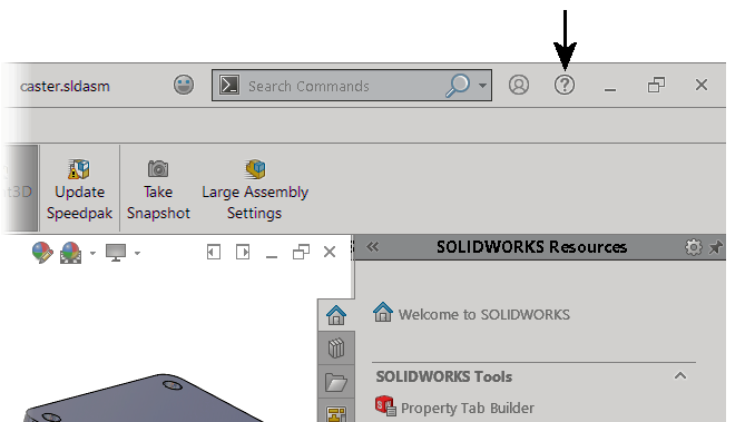 links to SOLIDWORKS help, tutorials, and other resources. |