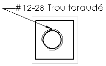 Les représentations de filetage servent à décrire les attributs d'un perçage spécifique sans qu'il soit nécessaire d'ajouter les filetages réels au modèle. Elles représentent le diamètre mineur (interne) d'un filetage sur un bossage ou le diamètre majeur (externe) d'un filetage sur un perçage et peut inclure un symbole de perçage dans les mises en plan.