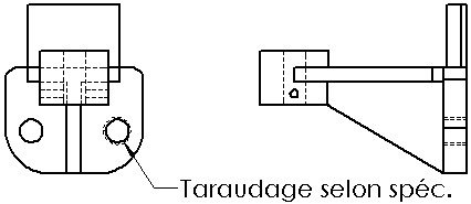 Les représentations de filetage dans les documents de pièce sont automatiquement insérées dans les vues de mise en plan. Un texte associé est également inséré si le document de mise en plan utilise la norme ANSI. (Vous insérez des textes associés dans le PropertyManager Représentation de filetage, mais ils apparaissent uniquement dans les documents de mise en plan.) Les textes associés ne sont pas utilisés dans les standards ISO, JIS, ou autres, mais vous pouvez les montrer en sélectionnant Insérer un symbole dans le menu contextuel (voir paragraphe suivant). Pour insérer des représentations de filetage à partir de documents d'assemblage dans des mises en plan, cliquez sur et cliquez sur Représentation de filetage