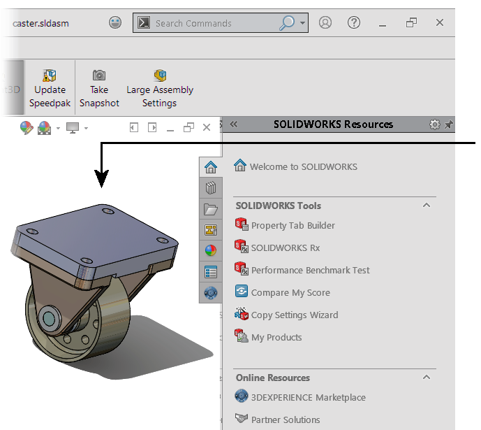 Zone graphique La zone graphique vous permet de manipuler les pièces, les assemblages et les mises en plan. Table des matières Trièdre de référence Un trièdre apparaît dans les documents de pièce et d'assemblage pour vous aider à vous orienter lors de la visualisation des modèles. Vous pouvez également l'utiliser pour changer l'orientation de la vue. Vous pouvez le masquer, mais pas l'utiliser comme point d'inférence. Fils d'Ariane de sélection Les fils d'Ariane de sélection sont un affichage contextuel de la sélection en cours. Ils affichent, pour les pièces et les assemblages, les éléments associés dans toute l'arborescence hiérarchique. Trièdre Le trièdre facilite la manipulation d'objets divers tels que les entités d'esquisse 3D, les pièces, certaines fonctions et les composants des assemblages. Origine L'origine du modèle représente les coordonnées (0,0,0) de ce dernier. Quand une esquisse est active, l'origine de l'esquisse représente les coordonnées (0,0,0) de l'esquisse. Barre d'outils Affichage de type visée haute Une barre d'outils transparente dans chaque fenêtre d'affichage fournit tous les outils nécessaires pour manipuler la vue. Accepter les fonctions Vous disposez de plusieurs moyens simplifiés d'accepter les fonctions que vous créez, dont le clic avec le bouton droit de la souris, l'utilisation du coin de confirmation et les commandes standard du PropertyManager. Sélection avec le pointeur Avancé par clic avec le bouton droit de la souris Cliquez à l'aide du bouton droit de la souris sur le pointeur Avancé dans la zone graphique pour parcourir les sélections du PropertyManager lorsque plusieurs sélections sont nécessaires. Textes associés et poignées Les textes associés sont des boîtes de texte qui apparaissent dans la zone graphique lorsque vous utilisez certains outils Les poignées vous permettent de cliquer sur les objets et de régler certains paramètres sans quitter la zone graphique. Aperçus ombrés et dynamiques Les aperçus dynamique et ombré vous permettent de voir l'aspect qu'auront vos modèles et la manière dont ils changeront si vous modifiez les cotes. Options de couleurs du système Vous pouvez spécifier les couleurs de l'interface utilisateur : arrière-plan, icônes, papier de mise en plan, état de l'esquisse, cotes, annotations, etc. Fenêtres d'affichage Vous pouvez afficher les modèles dans une, deux ou quatre fenêtres d'affichage. Capture d'image Capture la zone graphique de la fenêtre ou de la fenêtre d'affichage active et la place dans le presse-papiers. Enregistrement de vidéo Vous pouvez capturer une vidéo des actions effectuées dans la zone graphique. Sujet parentInterface utilisateur Vue d'ensemble de l'interface utilisateur