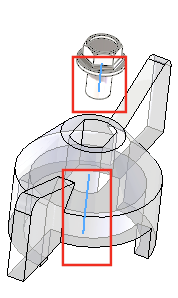 Survolez les faces et les surfaces cylindriques pour afficher les axes temporaires. Survolez les faces, puis appuyez sur la touche Q pour afficher la géométrie de référence. Sélectionnez plusieurs entités de géométrie de référence en appuyant sur la touche Maj ou Ctrl.