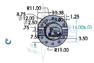 Lorsque vous activez Vues d'annotations dynamiques, vous ne voyez que les vues d'annotations qui sont pertinentes à l'orientation actuelle du modèle. Pendant que vous faites pivoter le modèle, les vues d'annotations qui ne sont pas normales à l'orientation du modèle disparaissent, alors que des annotations apparaissent lorsqu'elles s'approchent de la normale.