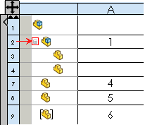 à gauche d'un sous-assemblage dans la colonne de structure de l'assemblage de la nomenclature. L'affichage du sous-assemblage est rassemblé dans la nomenclature.