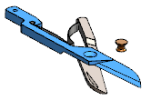 Dans cet exemple, une contrainte coaxiale est nécessaire entre un rivet et le trou de centrage dans une lame de ciseaux. L'utilisation de la Fenêtre d'aperçu du composant facilite la sélection de la petite face cylindrique du perçage.