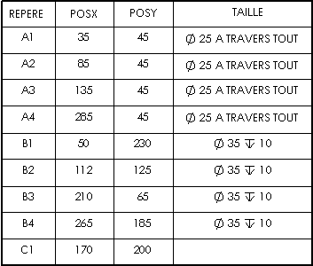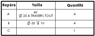 A, B, C... Utilise des labels de repère alphanumériques. Dans les repères alphanumériques, la lettre désigne une taille de perçage spécifique et le numéro une occurrence de perçage. Définissez le caractère de départ dans la zone Commencer à.