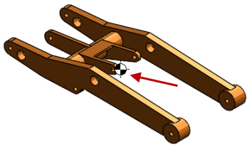 Dans la zone graphique, apparaît au centre de gravité du modèle. Dans l'arbre de création FeatureManager, le Centre de masse apparaît juste au-dessous de l'Origine .