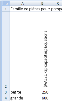 Dans les cellules du corps de la feuille de calcul, entrez la valeur de la variable globale. Si une cellule reste vide, elle hérite de la valeur de la configuration active lors de l'ouverture de la famille de pièces.
