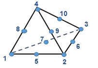 - Le calcul de la moyenne des contraintes au niveau des nœuds médians (5, 6, 7, 8, 9 et 10) se base sur les nœuds de coin associés. Par exemple, contrainte (nœud 5) = (contrainte (nœud 1) + contrainte (nœud 2)) / 2