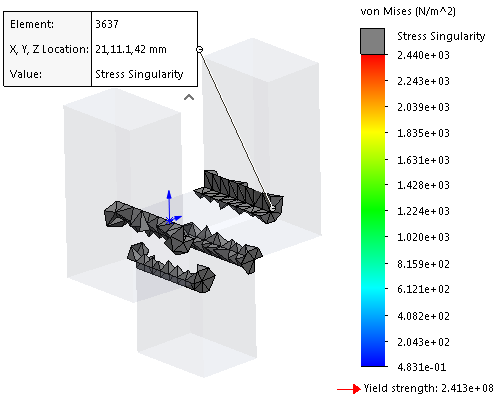 Lorsque vous exécutez un diagnostic de singularité de contrainte, bascule la visibilité des singularités de contrainte sur le tracé de contour de Von Mises. |
